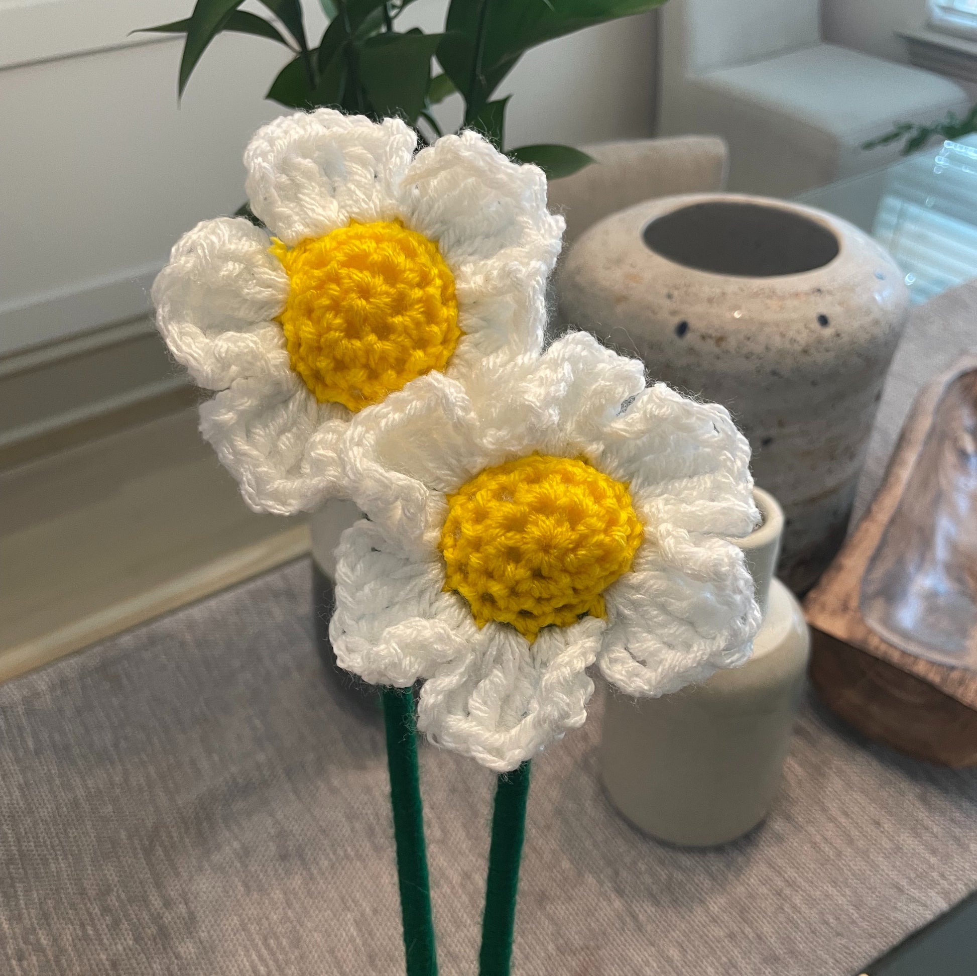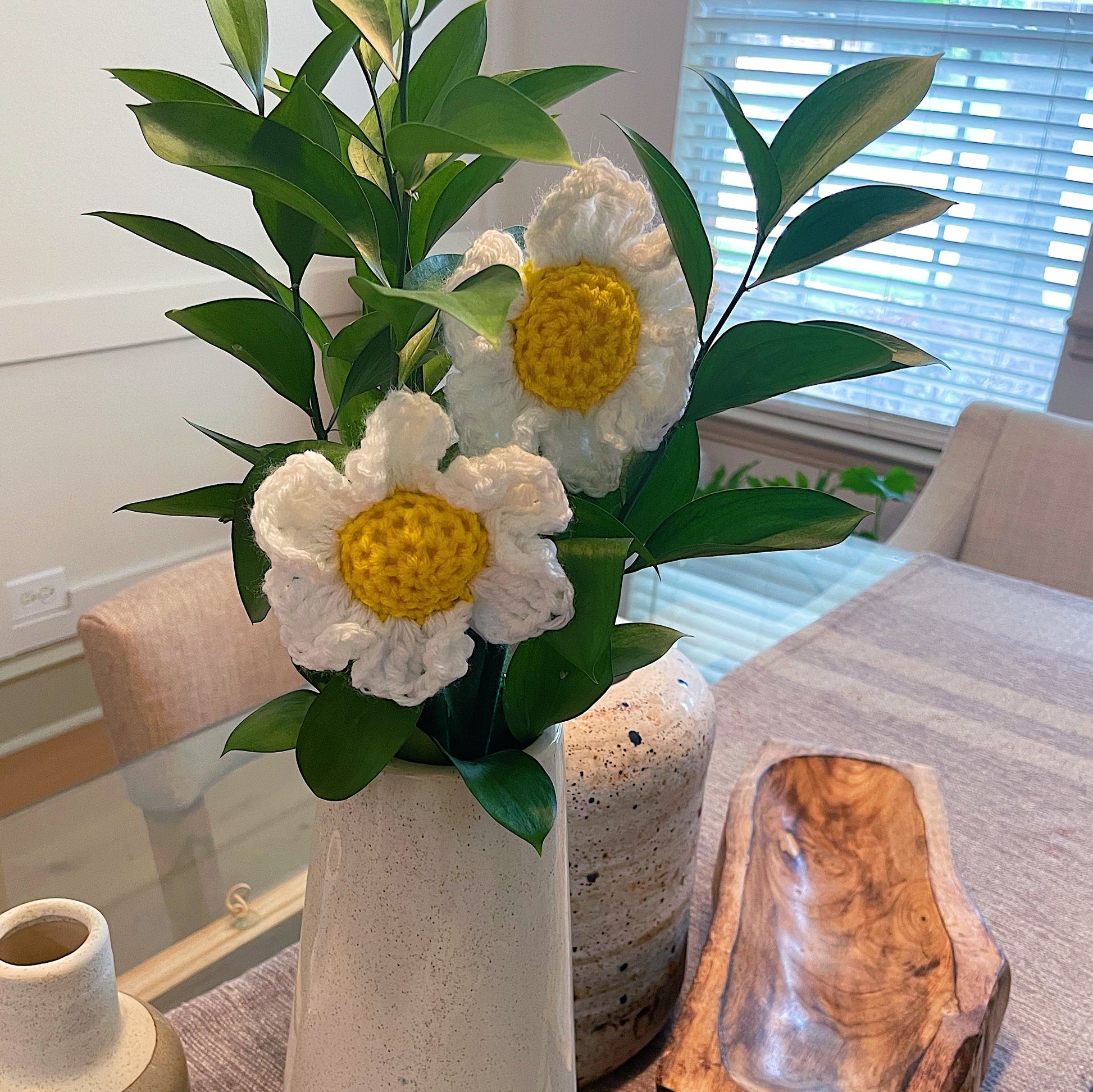 Daisy: From vibrant blooms to delicate blossoms, our crochet flowers bring a touch of elegance and charm to any project or space.