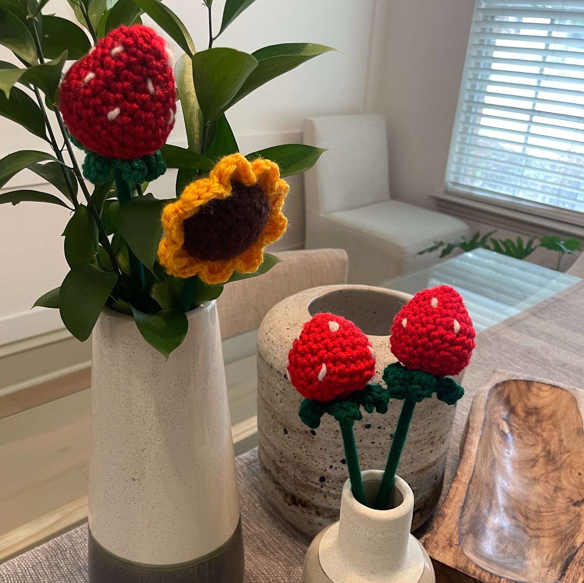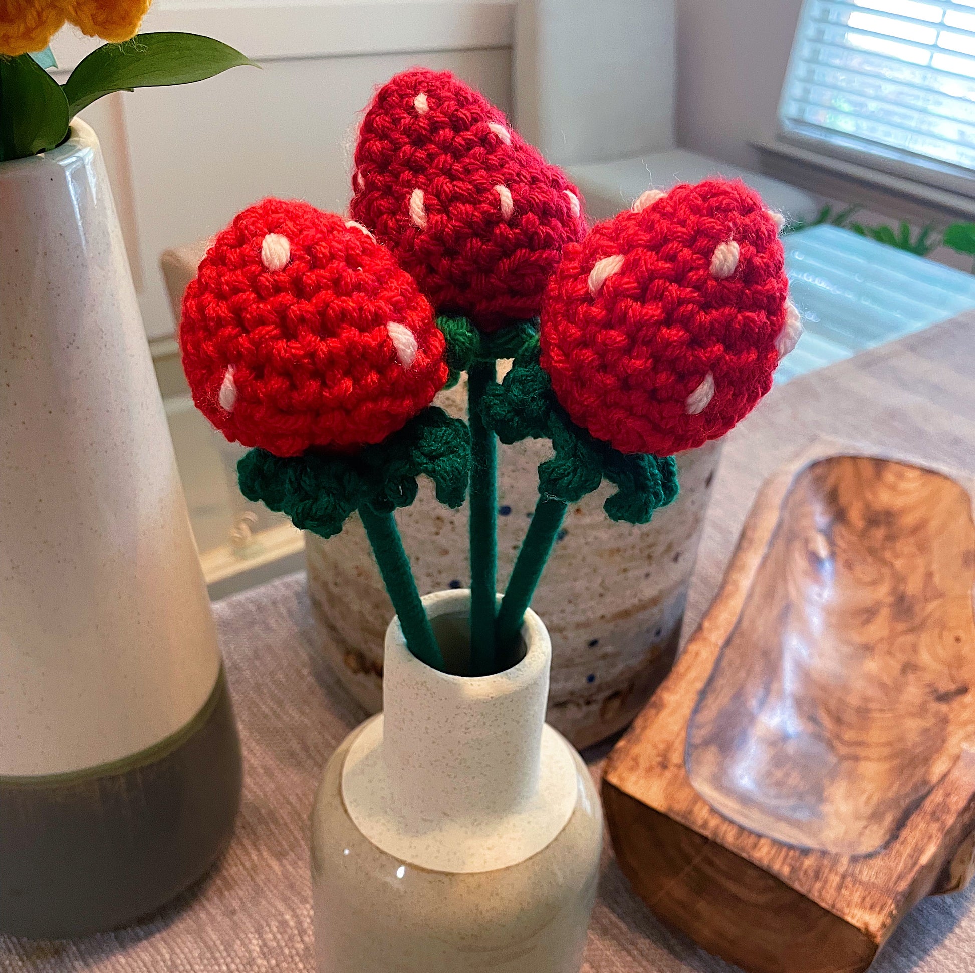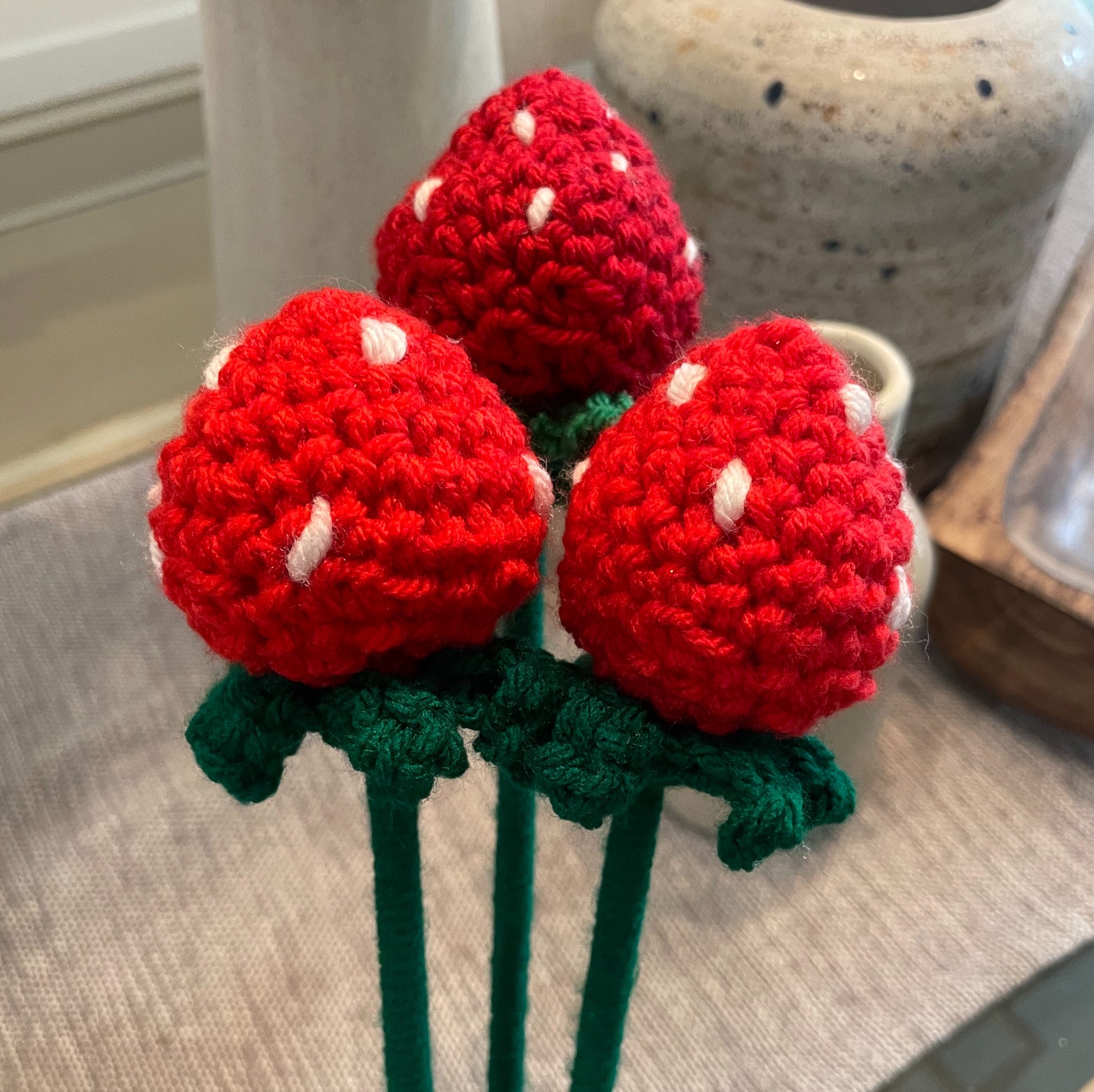Strawberry: available in multiple colors. From vibrant blooms to delicate blossoms, our crochet flowers bring a touch of elegance and charm to any project or space.