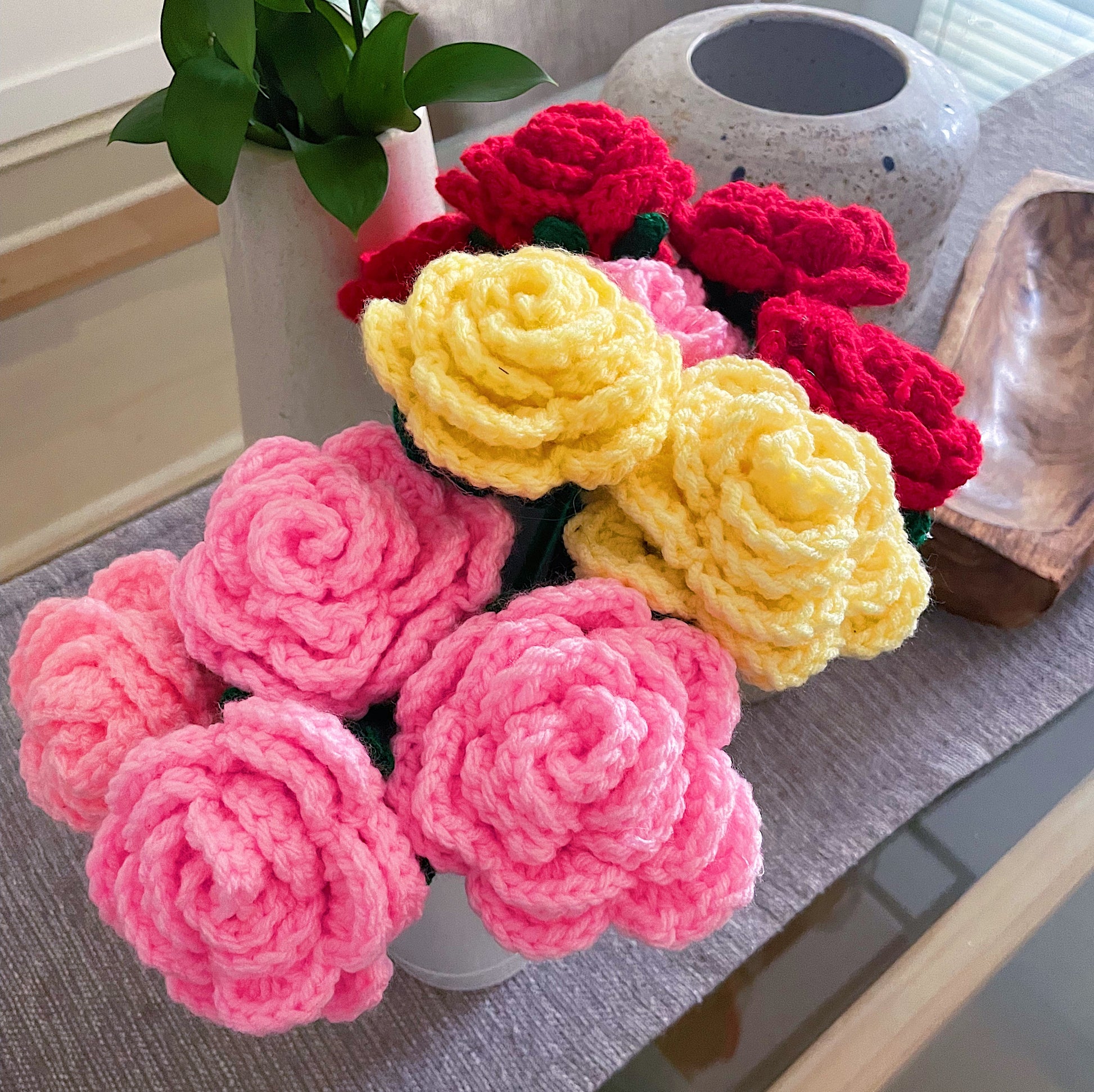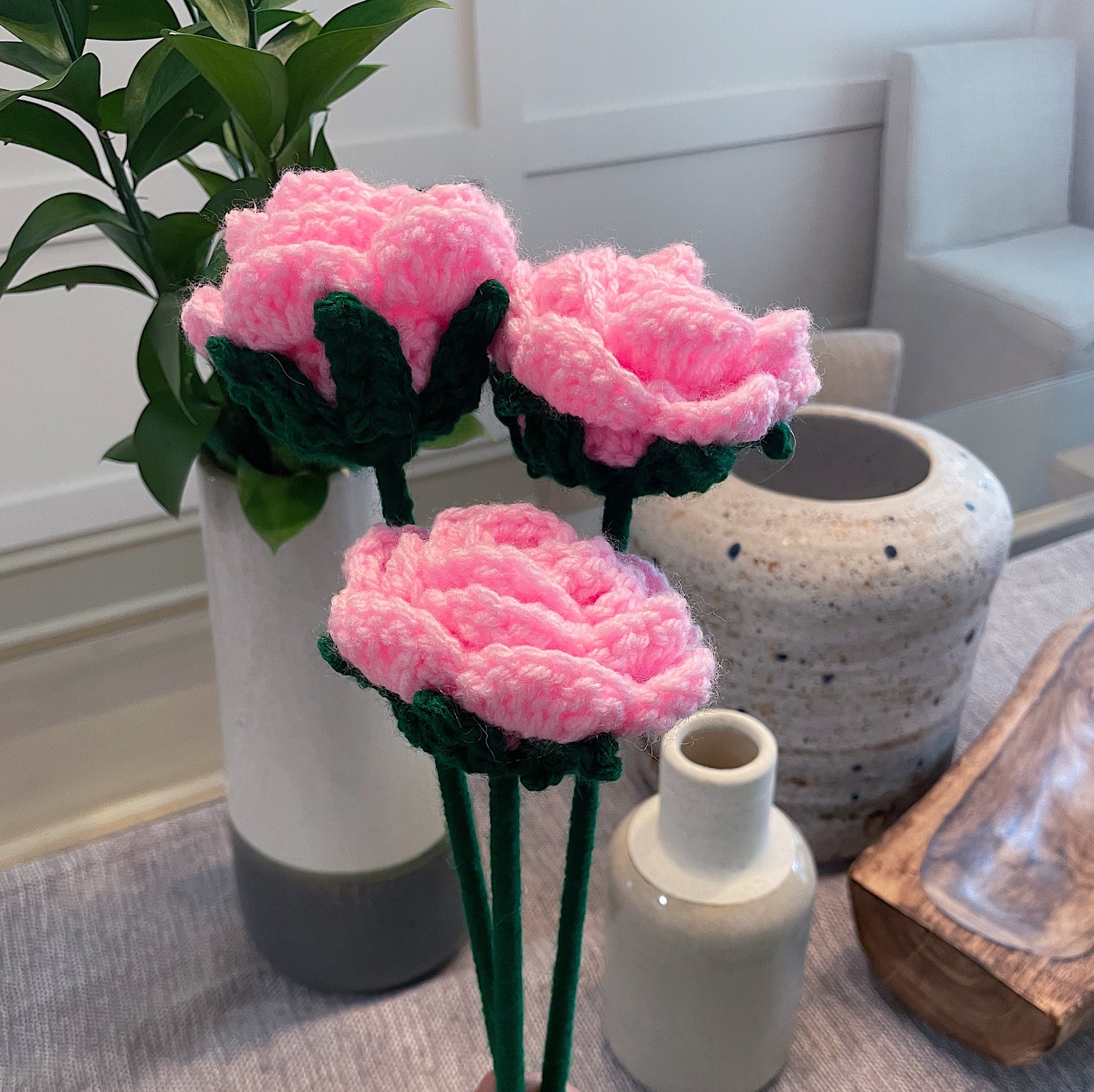 Rose: available in multiple colors. From vibrant blooms to delicate blossoms, our crochet flowers bring a touch of elegance and charm to any project or space.